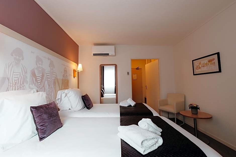 Chambre Quadruple Confort is 323 square feet and includes 4 single beds 80-130 width.